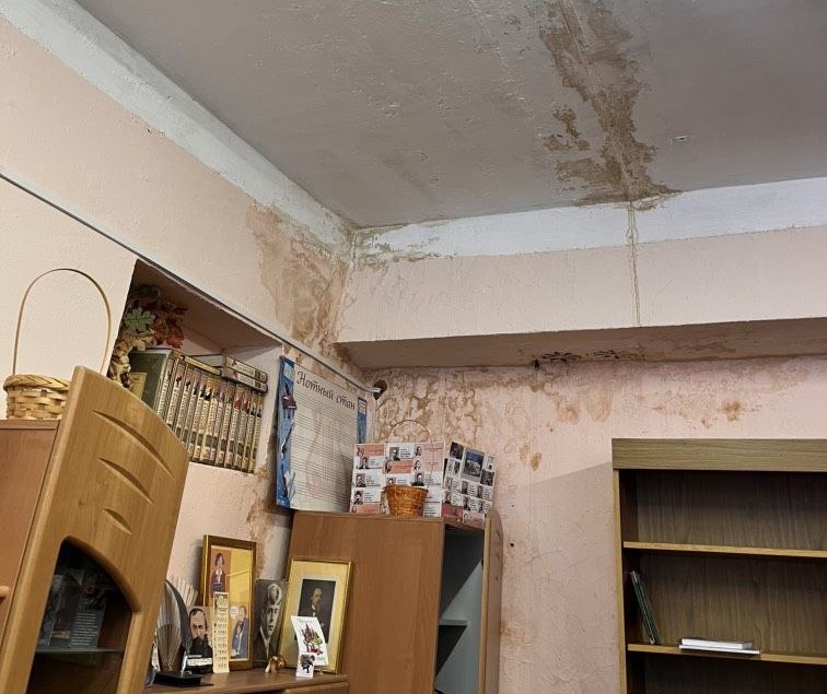 Выявлены дефекты полов в рекреации 2- го этажа, в помещении библиотеки и в санитарном узле для девочек; кроме того имели место протечки стен и потолка