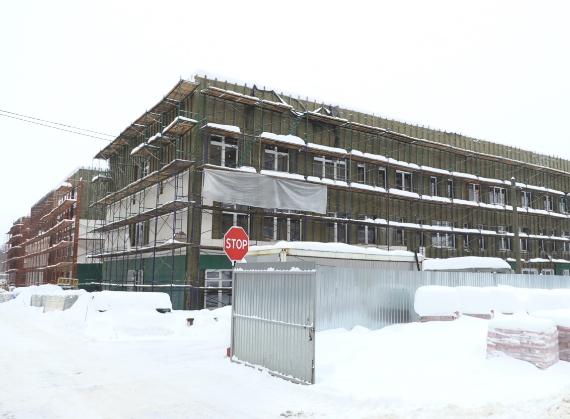 Один из корпусов готов на 95%, заверяет подрядчик. Сейчас - идет остекление витражей, работы по установке сантехники. Завершили даже штукатурку.