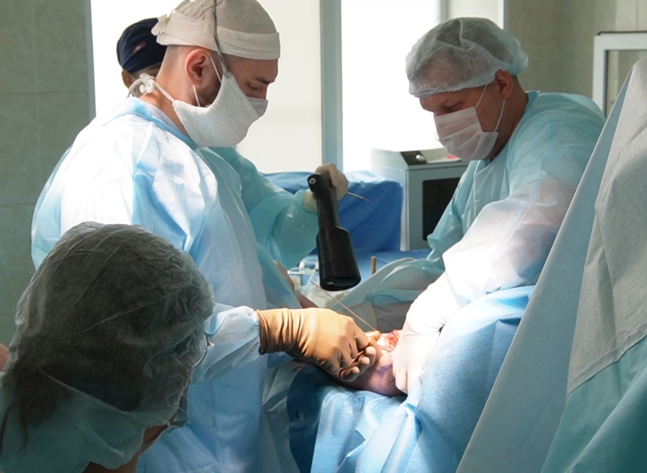 Операционная Областного центра спецмедпомощи. Хирургические вмешательства здесь проводят ежедневно и помогают пациентам победить болезни опорно-двигательного аппарата. В этот раз в операционной собрались ортопеды и травматологи со всего региона - для того, чтобы непосредственно во время работы обсудить современные техники и возможности помощи пациентам с патологиями конечностей.
