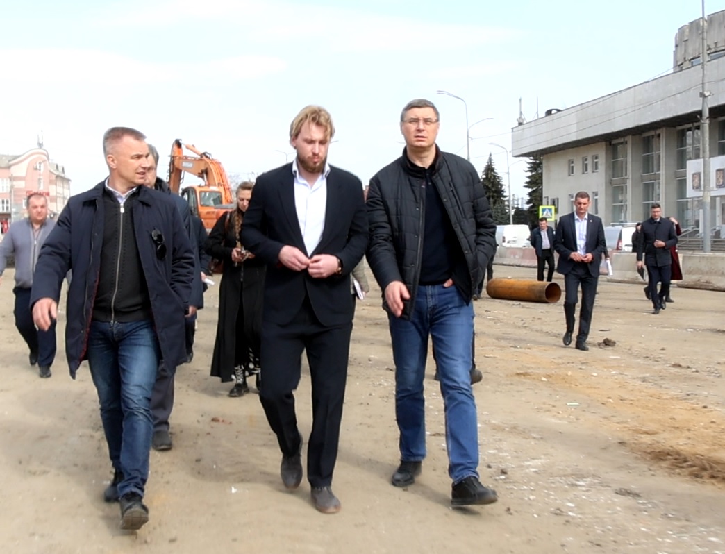 Одной из точек визита главы региона стала Вокзальная площадь, где сейчас в активной фазе идут строительные работы